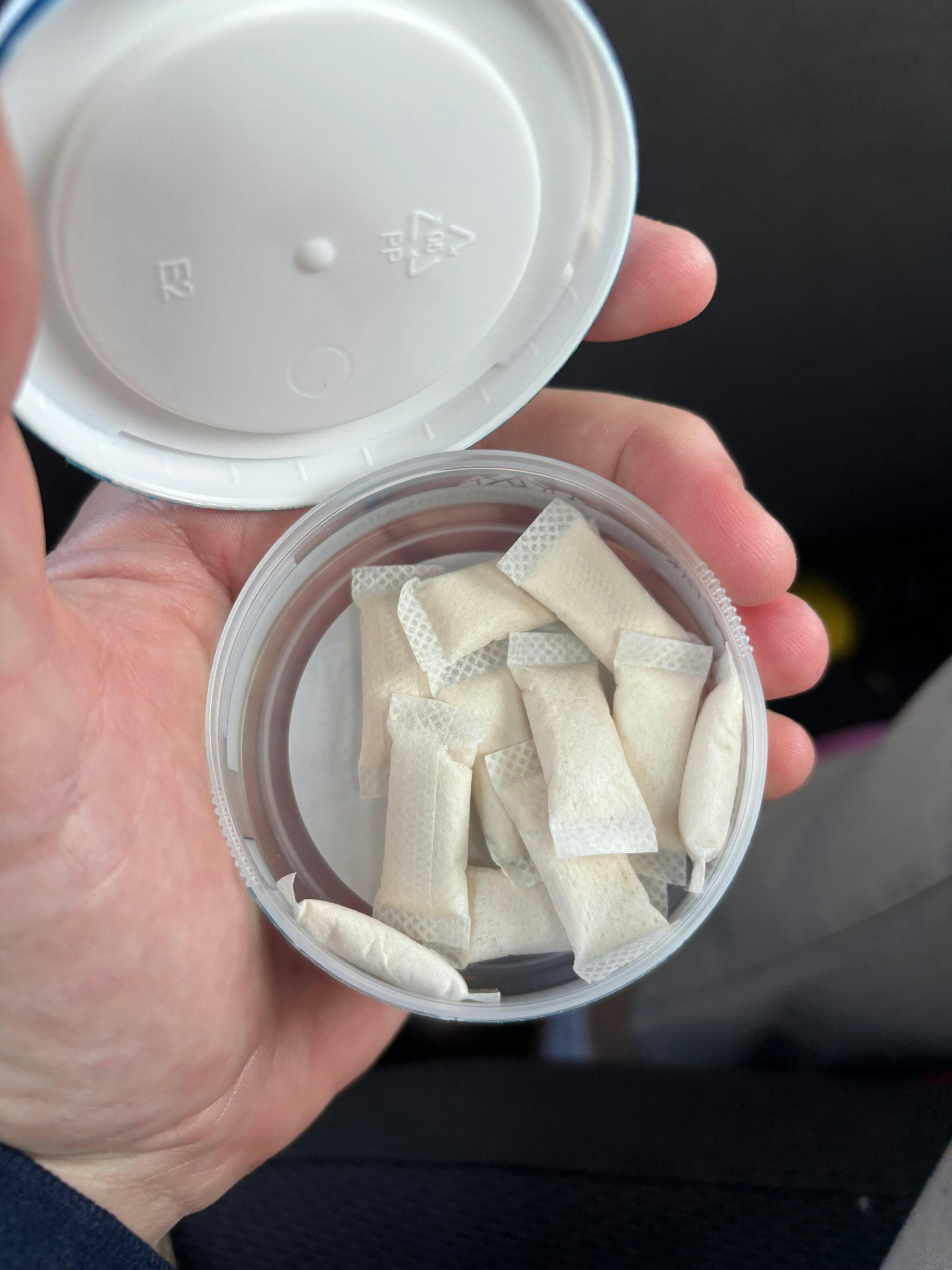 The can looks and feels way better than the flagship brands. I’d compare it to thens Ace make, but better. The pouches are rather long, similar to velo, with dense filling and slim width. If you’ve ever tried Fre (USA), the pouches have that same gum/spongey feel if that makes sense?
